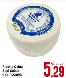 | Ricotta Ovina SEPI Salata 1/2 | Centro Cash | €5,39 | 25 settembre 2023 | 08 ottobre 2023 | |||
