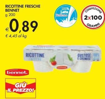 | Ricottine fresche bennet | Bennet | €0,89 | 22 settembre 2022 | 05 ottobre 2022 | |||