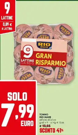 | Tonno rio mare in olio di oliva 65 g x 9 | Pam | €7,99 | 30 aprile 2025 | 07 maggio 2025 | |||