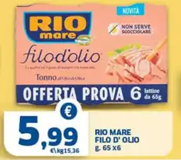 | RIO MARE tonno filo d'olio 65 x 6 g | Sigma | €5,59 | 27 agosto 2024 | 05 settembre 2024 | |||