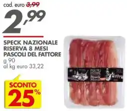| Speck nazionale riserva 8 mesi PASCOLI DEL FATTORE 90 g | Italmark | €3,99 | €2,99 | -25% | 10 dicembre 2025 | 06 gennaio 2026 | |