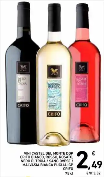 | Crifo Vino Castel Del Monte Dop Crifo Bianco, Rosso, Rosato, Nero di Troia/ Sangiovese/Malvasia bianca puglia igp 75 cl | Spazio Conad | €2,69 | 08 agosto 2022 | 21 agosto 2022 | |||