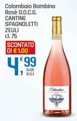 | Colombaio Bombino Rosè D.O.C.G. CANTINE SPAGNOLETTI ZEULI 75 cl | Supermercati Dok | €4,99 | 30 dicembre 2025 | 06 gennaio 2026 | |||