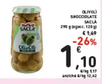 | Saclà Olive Olivoli 150g | Spazio Conad | €1,44 | €1,15 | €0,29 Sconto | 03 settembre 2021 | 12 settembre 2021 | |