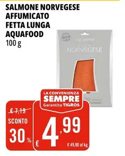 | SALMONE AFFUMICATO NORVEGESE FETTA LUNGA AQUAFOOD 100 g | Tigros | €7,19 | €4,99 | €2,20 Sconto | 03 aprile 2024 | 16 aprile 2024 |