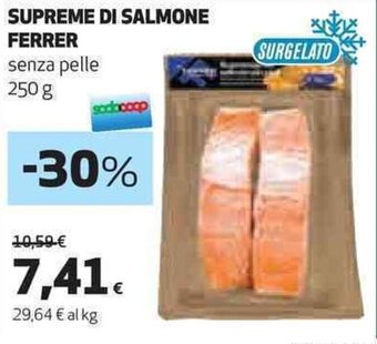 | SUPREME DI SALMONE FERRER senza pelle 250 g | Coop | €10,59 | €7,41 | €3,18 Sconto | 31 agosto 2023 | 13 settembre 2023 | |