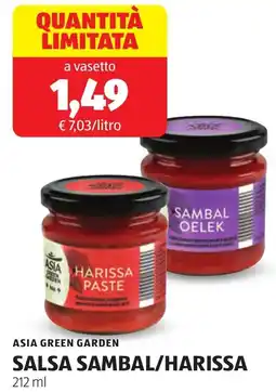 | Asia green garden salsa sambal/harissa 212 ml | ALDI | €1,49 | 16 febbraio 2026 | 22 febbraio 2026 | |||