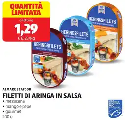 | Almare seafood filetti di aringa con salsa 200 g | ALDI | €1,29 | 04 novembre 2024 | 10 novembre 2024 | |||
