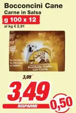 | Bocconcini Cane Carne in Salsa 100 g x 12 | Prix Quality | €3,99 | €3,49 | €0,50 Sconto | 30 agosto 2024 | 09 settembre 2024 | |