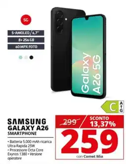| SAMSUNG GALAXY A26 SMARTPHONE | Comet | €299,00 | €259,00 | Sconto 13.37% | 22 gennaio 2026 | 04 febbraio 2026 | |