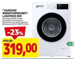 | SAMSUNG WW80FG3M05AWET LAVATRICE 8KG | DPiù | €419,00 | €319,90 | -23% | 26 gennaio 2026 | 08 febbraio 2026 | |