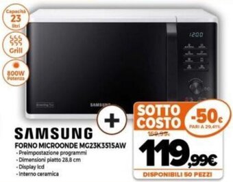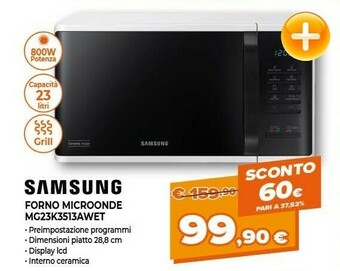 | SAMSUNG FORNO MICROONDE MC28H5015CK | Expert | €179,90 | 28 agosto 2025 | 10 settembre 2025 | |||