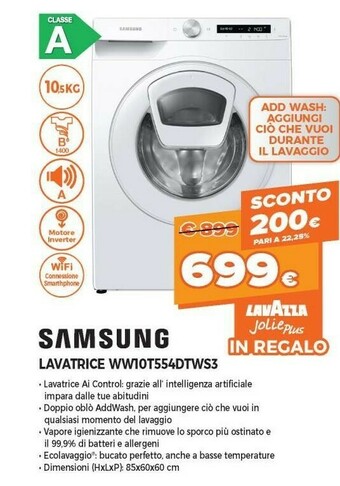 | Samsung Lavatrice 1.400 giri Ai-Control WWIIDG6B25LK | Expert | €599,00 | 28 agosto 2025 | 10 settembre 2025 | |||