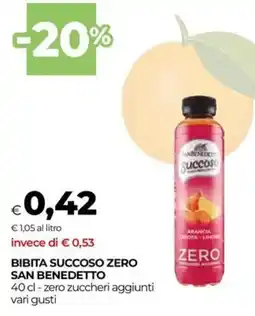 | Bibita succoso zero SAN BENEDETTO 40 cl | Unicoop | €0,53 | €0,42 | -20% | 25 febbraio 2026 | 11 marzo 2026 | |