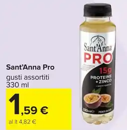 | Sant'Anna Pro 330 ml | Carrefour | €1,59 | 22 aprile 2025 | 04 maggio 2025 | |||