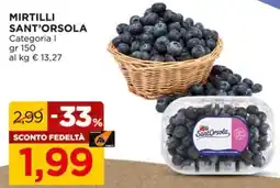 | 1 | Mirtilli SANT'ORSOLA 150 g | Alì Supermercati | €2,99 | €1,99 | -33% | 23 aprile 2026 | 06 maggio 2026 | Guarda l'offerta | |