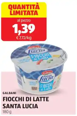 | Galbani mozzarella santa lucia 3 x 100 g | ALDI | €3,29 | €1,79 | -45% | 10 febbraio 2025 | 16 febbraio 2025 | |