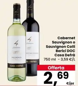 | 2 | Cabernet Sauvignon o Sauvignon Colli Berici DOC Casa Defrà 750 ml | Despar | €2,69 | 21 aprile 2026 | 29 aprile 2026 | Guarda l'offerta | |||