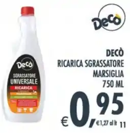 | Decò ricarica sgrassatore marsiglia 750 ml | Deco Supermercati | €0,95 | 28 aprile 2026 | 07 maggio 2026 | |||
