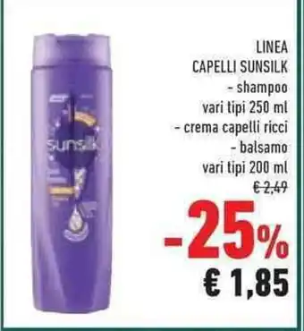 | Linea capelli SUNSILK - shampoo- balsamo 200-250 ml | Conad Superstore | -30% | 14 gennaio 2025 | 28 gennaio 2025 | |||