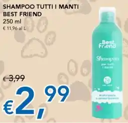 | Shampoo tutti i manti BEST FRIEND 250 ml | Migross Supermercati e Market | €3,99 | €2,99 | €1,00 Sconto | 23 aprile 2026 | 06 maggio 2026 | |