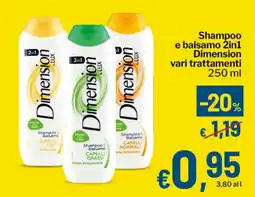 | Shampoo e balsamo 2in1 Dimension 250 ml | Qui Discount | €1,19 | €0,95 | -20% | 21 aprile 2026 | 03 maggio 2026 | |