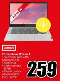| LENOVO Chromebook IP Slim 3 | MediaWorld | €249,00 | 03 settembre 2025 | 14 settembre 2025 | |||