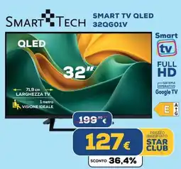 | 2 | SMART TECH SMART TV QLED 32QG01V | Euronics | €199,90 | €127,00 | €72,90 Sconto | 20 febbraio 2026 | 04 marzo 2026 | Guarda l'offerta | |