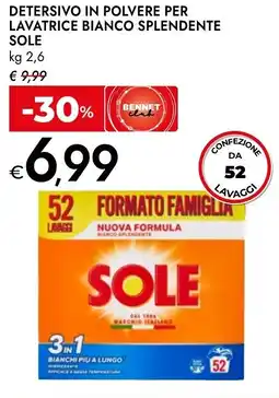 | Detersivo in polvere per lavatrice bianco splendente SOLE 2,6 kg | Bennet | €9,99 | €6,99 | -30% | 26 settembre 2024 | 09 ottobre 2024 | |