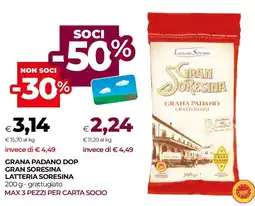 | 2 | Grana padano dop gran soresina LATTERIA SORESINA 200 g | Unicoop | €4,49 | €3,14 | -30% | 11 febbraio 2026 | 25 febbraio 2026 | Guarda l'offerta | |