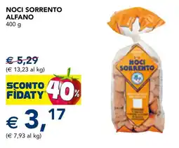 | 1 | Noci sorrento ALFANO 400 g | Esselunga | €5,29 | €3,17 | Sconto fidaty 40% | 11 dicembre 2025 | 31 dicembre 2025 | Guarda l'offerta | |