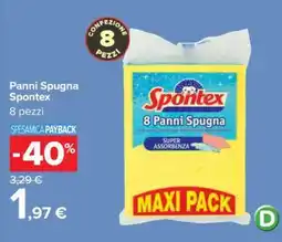 | 4 Panni Spugna Spontex | Carrefour | €2,19 | €1,75 | €0,44 Sconto | 25 settembre 2023 | 08 ottobre 2023 | |