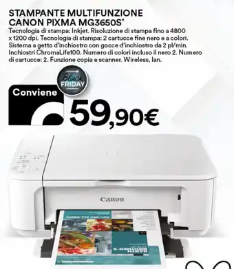 | STAMPANTE MULTIFUNZIONE CANON PIXMA MG3650S | Ipercoop | €59,90 | 16 novembre 2023 | 30 novembre 2023 | |||