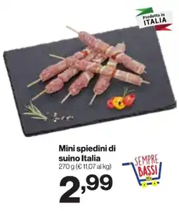 | Mini spiedini di suino Italia 270 g | In'S Mercato | €2,99 | 04 giugno 2025 | 15 giugno 2025 | |||
