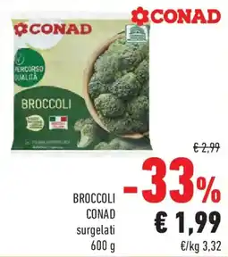 | 2 | Broccoli CONAD surgelati 600 g | Conad | €2,99 | €1,99 | -33% | 12 gennaio 2026 | 28 gennaio 2026 | Guarda l'offerta | |