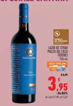| Syrah ripensato doc | PENNY | €3,99 | €3,69 | €0,30 Sconto | 26 marzo 2026 | 04 aprile 2026 |