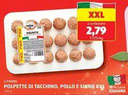 | IL PODERE Polpette di tacchino, pollo e suino XXL | ALDI | €2,79 | 07 aprile 2025 | 13 aprile 2025 | |||