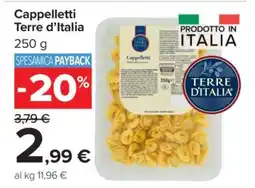 | 1 | Cappelletti Terre d'Italia 250 g | Carrefour Market | €3,99 | €3,19 | -20% | 13 marzo 2026 | 23 marzo 2026 | Guarda l'offerta | |
