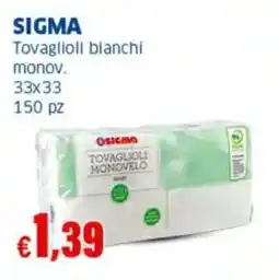 | SIGMA Tovaglioli bianchi monov. | Sigma | €1,49 | 23 ottobre 2025 | 05 novembre 2025 | |||