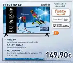 | 2 | TCL TV Full HD 32" | Unieuro | €149,90 | 16 gennaio 2026 | 29 gennaio 2026 | Guarda l'offerta | |||