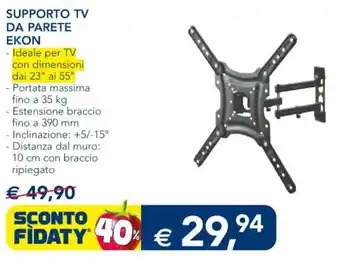| SUPPORTO TV DA PARETE ΕΚΟΝ | Esselunga | €49,90 | €29,94 | €19,96 Sconto | 07 marzo 2024 | 16 marzo 2024 | |