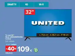 | Tv Led United 32" HD VIDAA | Carrefour | €169,00 | €109,00 | €60,00 Sconto | 23 ottobre 2025 | 06 novembre 2025 |