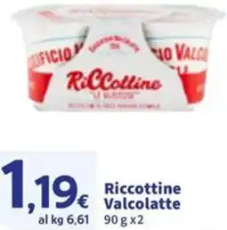 | Riccottine Le Gustose Valcolatte g 90x2 | Sigma | €1,09 | 16 marzo 2023 | 29 marzo 2023 | |||