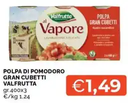 | POLPA DI POMODORO GRAN CUBETTI VALFRUTTA gr 400x3 | Mercatò | €1,77 | 02 maggio 2024 | 11 maggio 2024 | |||