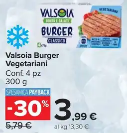 | Valsoia Burger Vegetariani 300 g | Carrefour Market | €5,88 | €3,99 | €1,89 Sconto | 27 gennaio 2026 | 05 febbraio 2026 | |