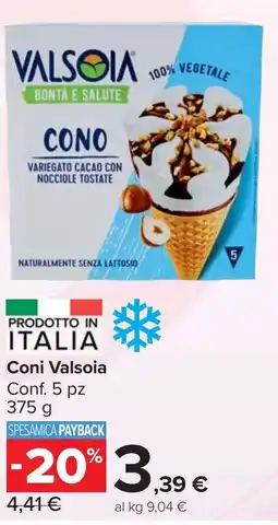 | Coni Valsoia Conf. 5 pz 375 g | Carrefour Market | €4,84 | €3,09 | €1,75 Sconto | 25 luglio 2024 | 07 agosto 2024 | |