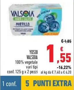 | Valsoia Yosoi vari tipi conf. 125 g x 2 pezzi | Conad | €1,25 | 02 febbraio 2022 | 09 febbraio 2022 | |||