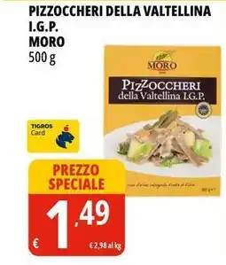 | Pizzoccheri della valtellina I.G.P. MORO 500 g | Tigros | €1,65 | €1,39 | -15% | 29 ottobre 2025 | 11 novembre 2025 | |
