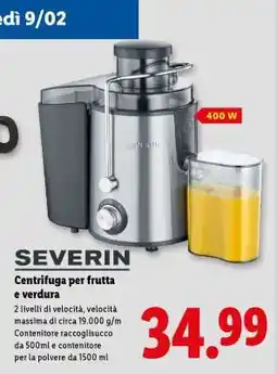 | 1 | SEVERIN Centrifuga per frutta e verdura | Lidl | €34,99 | 09 febbraio 2026 | 15 febbraio 2026 | Guarda l'offerta | |||
