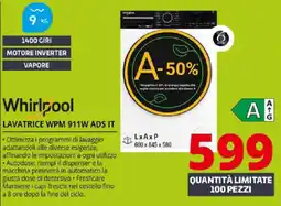 | Whirlpool LAVATRICE WPM 911W ADS IT | Comet | €599,00 | 02 gennaio 2026 | 21 gennaio 2026 | |||